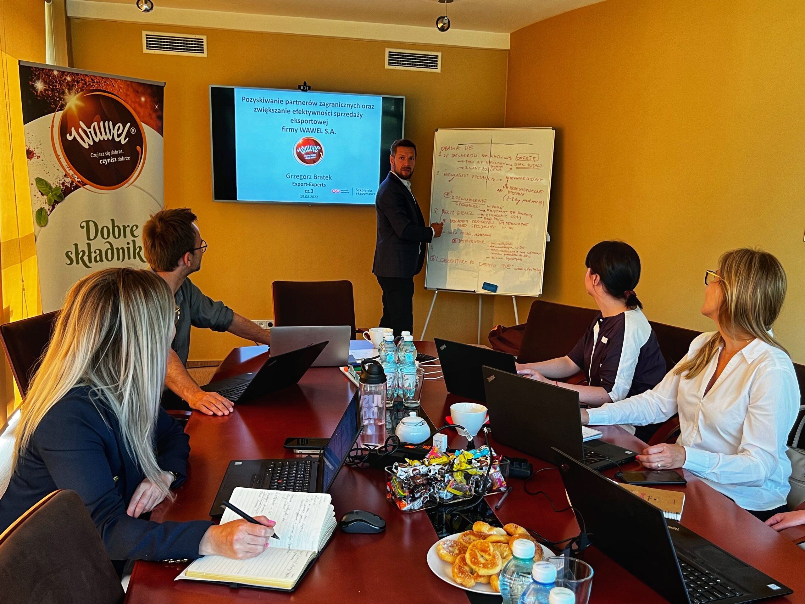 Z wielką przyjemnością rozpoczęliśmy współpracę z firmą WAWEL S.A. przy organizacji cyklu szkoleń eksportowych nt.: Pozyskiwanie partnerów zagranicznych oraz zwiększanie efektywności sprzedaży eksportowej. Szkolenia odbywają się od lipca do października br., a za nami już cztery, intensywne spotkania.