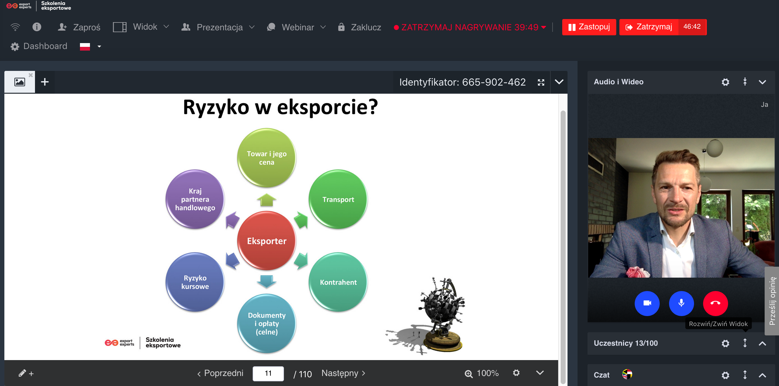 Od połowy kwietnia do grudnia 2020, przeprowadziliśmy ponad 40 webinarów, konferencji i szkoleń eksportowych online. Większość z nich trwała od 3 do nawet 6 godzin, a średnia frekwencja na każdym wynosiła 25-50 firm. Łącznie, w świecie online, przeszkoliliśmy 1064 firmy w tematach eksportowych.